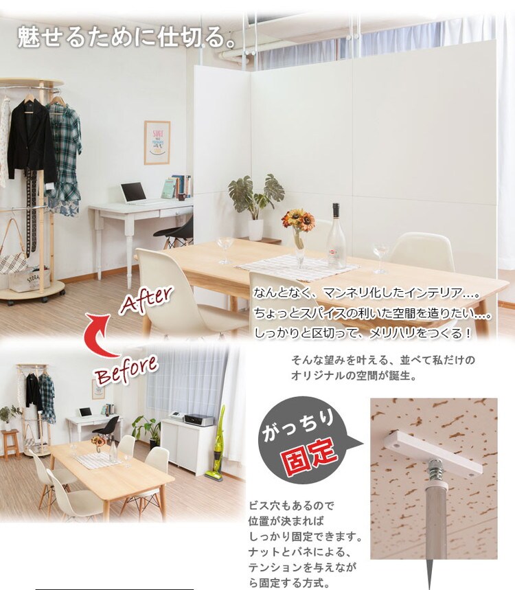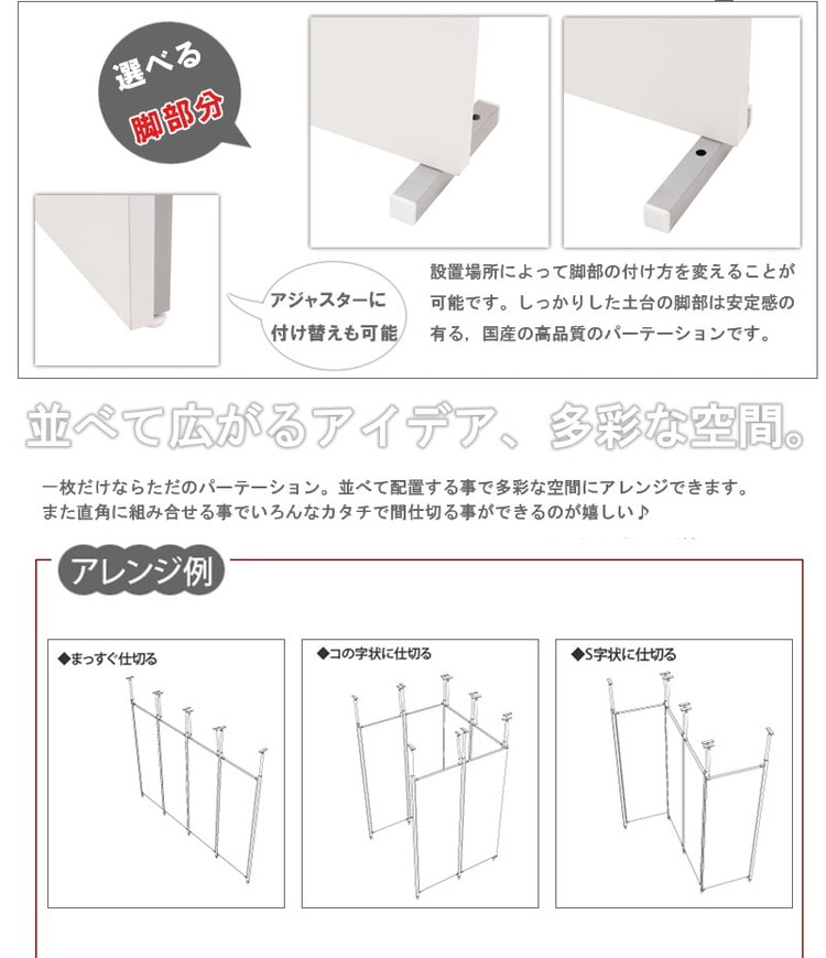 収納も何も必要のない間仕切りのみが必要な方や同シリーズを組み合わせて使用でパーテーションの完成。ドアカーテンをセットすれば入り口も出来上がり。