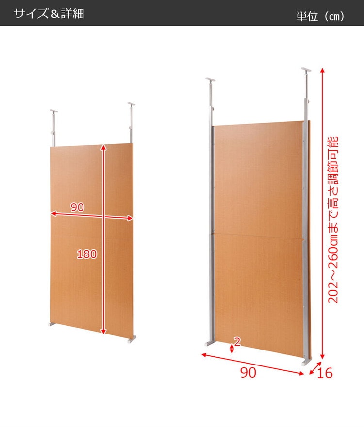 本体:(約)幅90×奥行16×高さ202~260cm