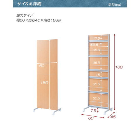 本体:(約)幅60×奥行4.5(脚部45)×高さ188cm
