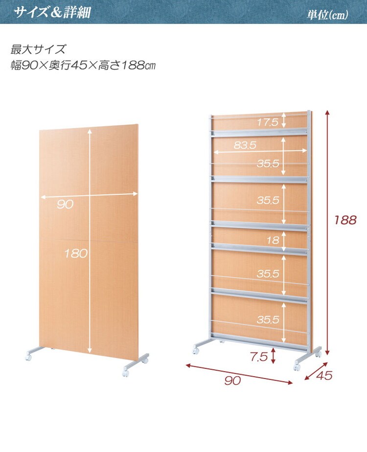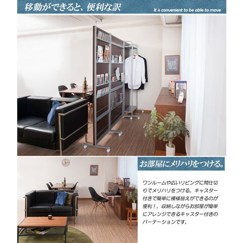 目隠し部分は清潔感際立つホワイト色、木目の温かみの落着きあるナチュラル色、モダンな印象のダークブラウン。キャスター付きでサッと移動ができて、奥行も薄型で圧迫感がありません。