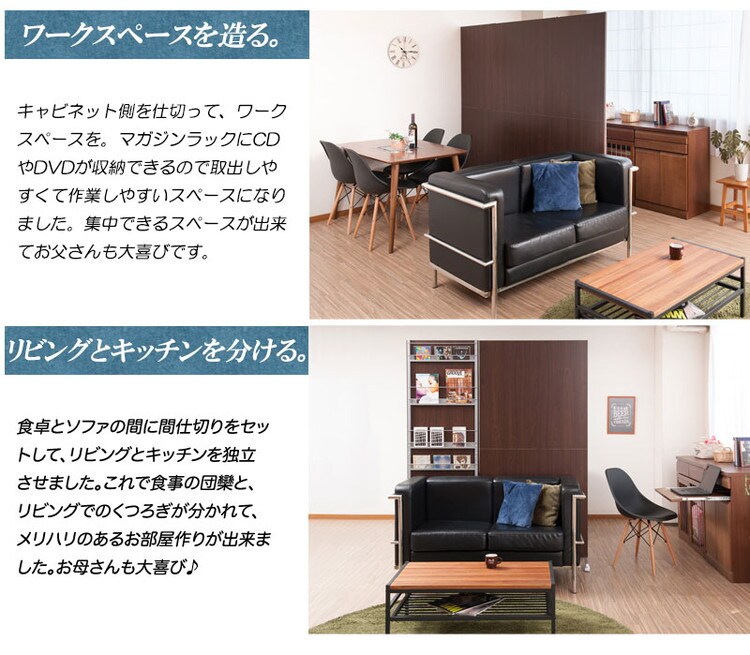 目隠し部分は清潔感際立つホワイト色、木目の温かみの落着きあるナチュラル色、モダンな印象のダークブラウン。キャスター付きでサッと移動ができて、奥行も薄型で圧迫感がありません。