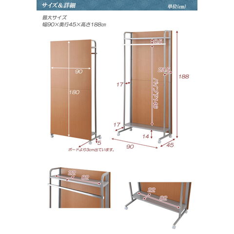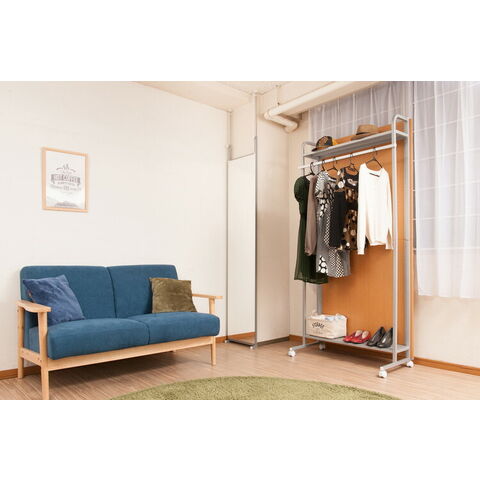 パーテーション幅90 ナチュラル ハンガーラックタイプ キャスター キャスター付き ハンガーラック 衣類収納 薄型 間仕切り 仕切り パネル シンプル オフィス リモートワーク 事務所 国産 囲い【送料無料】