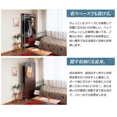 目隠し部分は清潔感際立つホワイト色、木目の温かみの落着きあるナチュラル色、モダンな印象のダークブラウン。キャスター付きでサッと移動ができて、奥行も薄型で圧迫感がありません。