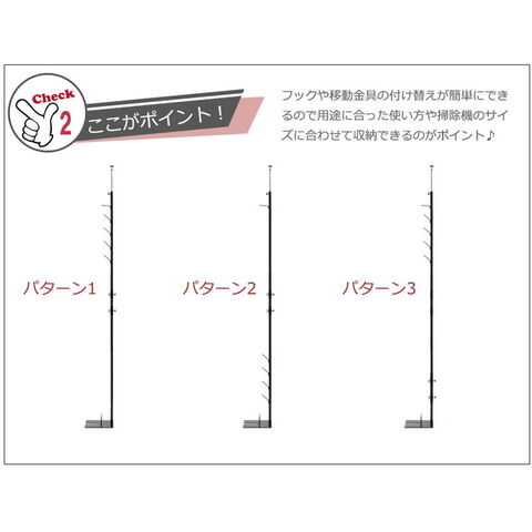 コードレスクリーナーやホース付きタイプなどあらゆる掃除機に対応した掃除機収納ストッカー。