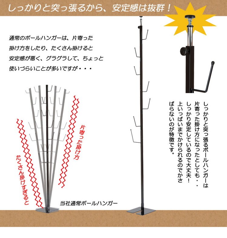ポールハンガー 多段型 ブラック フック つっぱり 国産 ハンガー ディスプレイ ラック 玄関 リビング【送料無料】