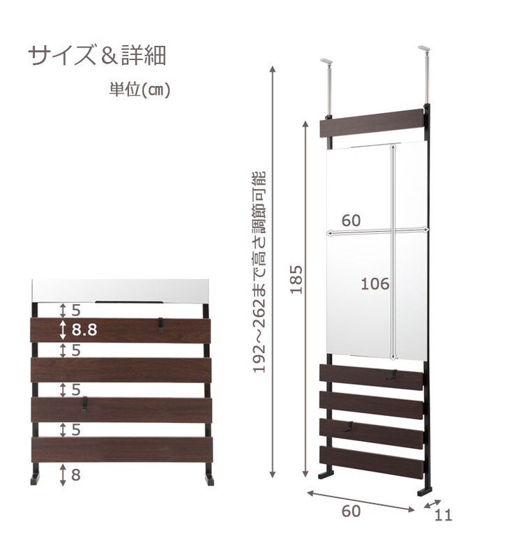 ■商品サイズ/本体:(約)幅60×奥行9(脚部11)×高さ192~262cm