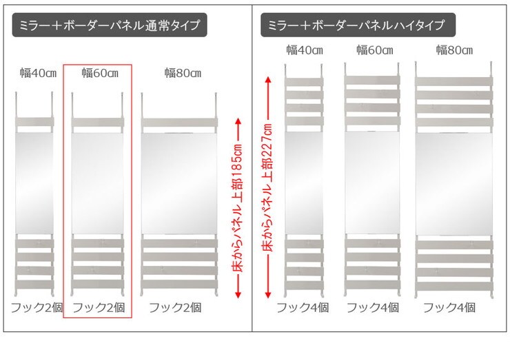ミラータイプを壁面いっぱいに並べればリゾートホテルのような感覚に。玄関やリビング、キッチンなどあらゆるシーンに。