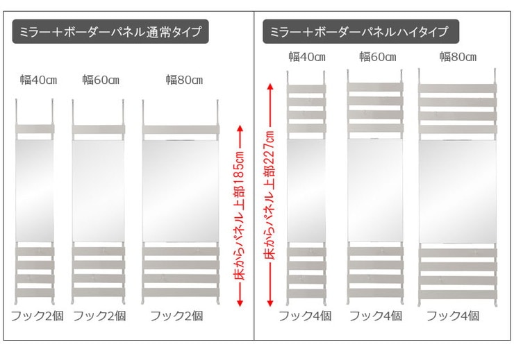 ミラータイプを壁面いっぱいに並べればリゾートホテルのような感覚に。玄関やリビング、キッチンなどあらゆるシーンに。