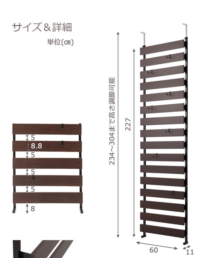 ■商品サイズ/本体:(約)幅60×奥行9(脚部11)×高さ234~304cm