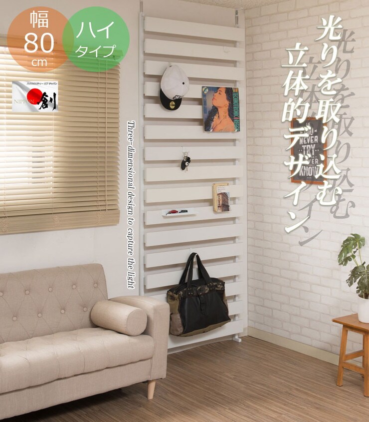 日本製 突っ張り 立体ラック 収納ラック ボーダーラック 幅80cm ハイタイプ ホワイト リビング リビングおしゃれ シンプル【送料無料】