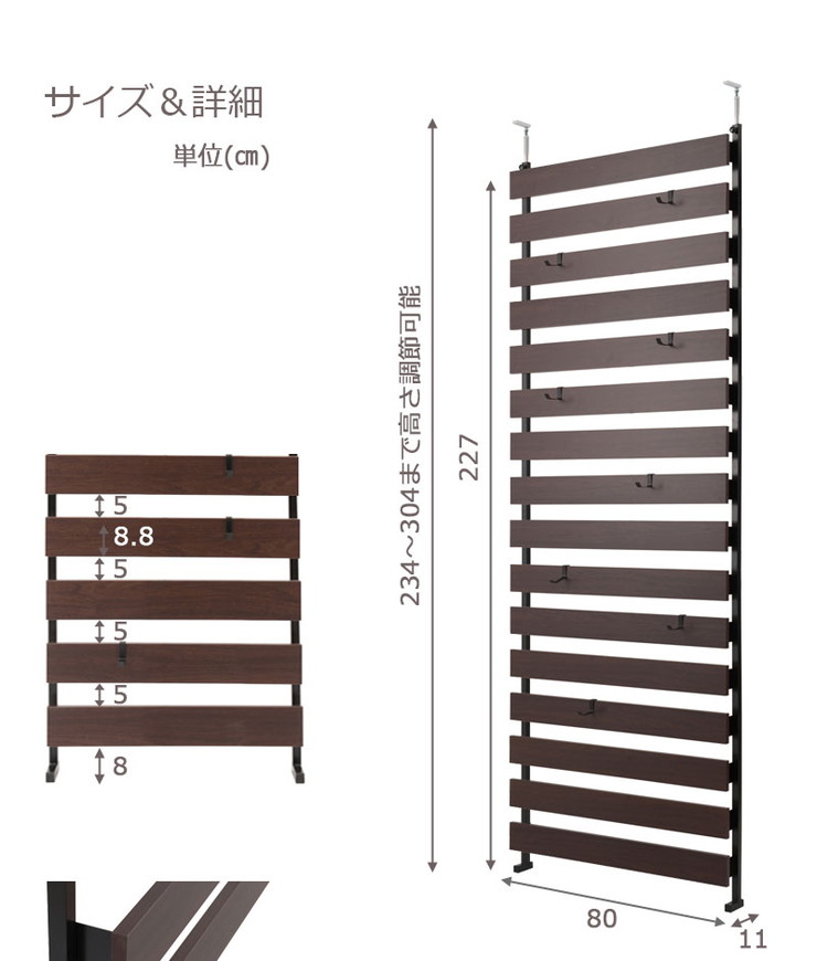 ■商品サイズ/本体:(約)幅80×奥行9(脚部11)×高さ234~304cm