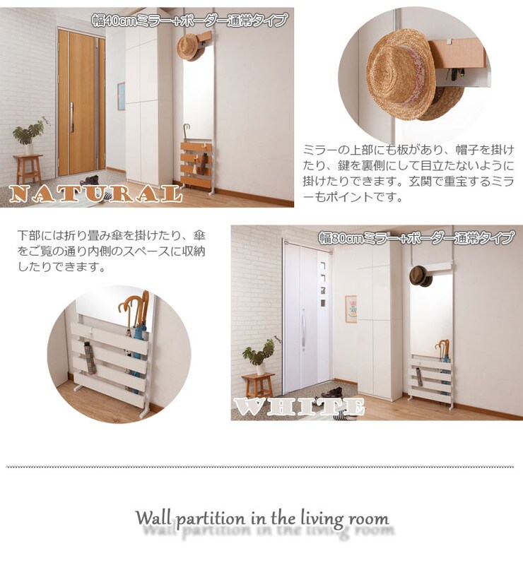 ミラータイプを壁面いっぱいに並べればリゾートホテルのような感覚に。玄関やリビング、キッチンなどあらゆるシーンに。