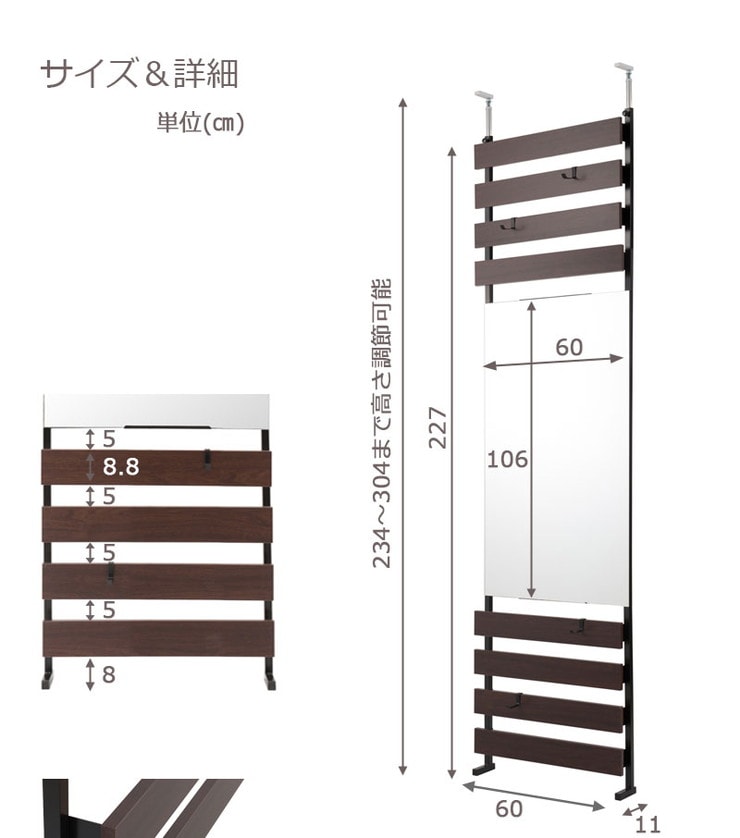 ■商品サイズ/本体:(約)幅60×奥行9(脚部11)×高さ234~304cm、