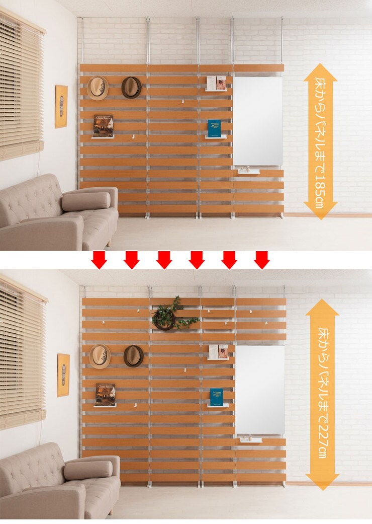 ■商品について/立体的にラダーを組み上げた突っ張り式ラダーラックのジョイントパネルパーツ。別売りの本体と併用することで、目隠しラダー面が約42cmプラスになり天井までキレイにデザインできます。