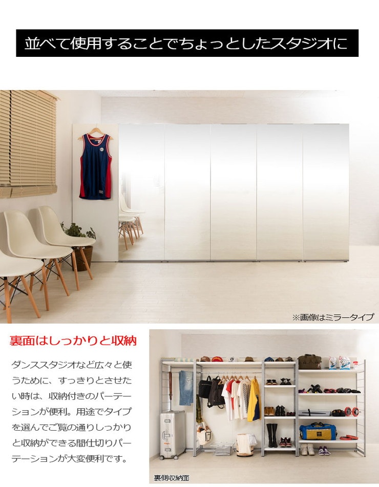 ミラータイプはダンススタジオやヨガスタジオ、ダンスレッスンなどにも重宝。充実した収納&頑丈がポイント。