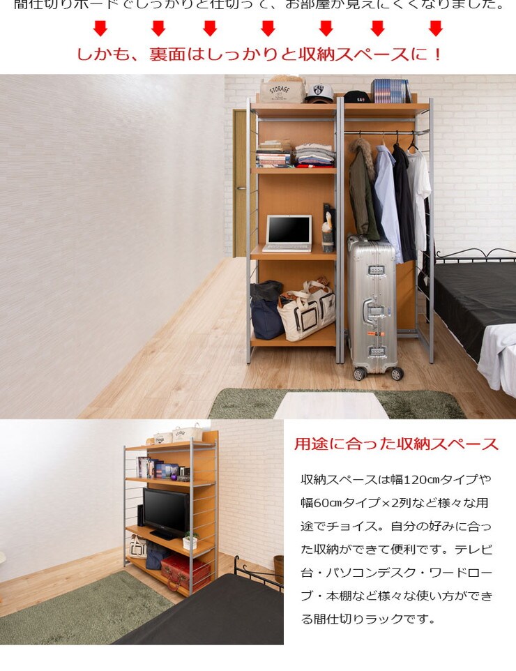 日本製 パーテーション 間仕切り 仕切り リビング 収納 収納ラック 幅120cm ハンガー ダークブラウン【送料無料】