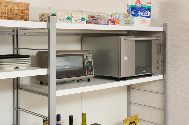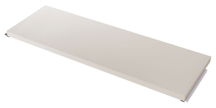 頑丈設計の間仕切りラックシリーズの専用棚板パーツ。棚板厚のボリュームアップにより強度も備えた収納面に間仕切り面はすっきりとした木目調から清潔感あるホワイト色の3カラー展開。