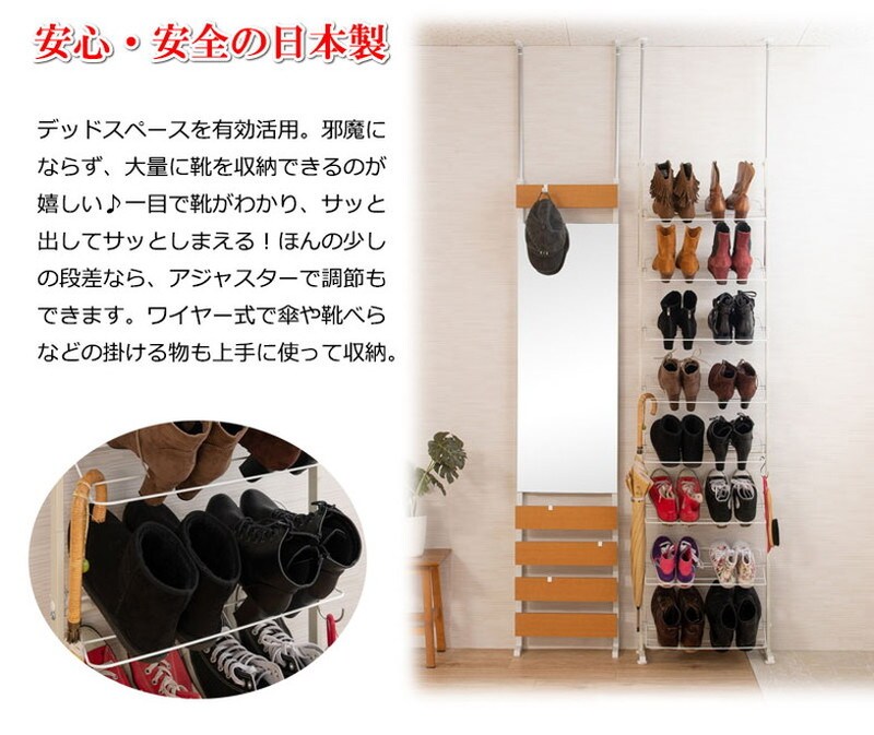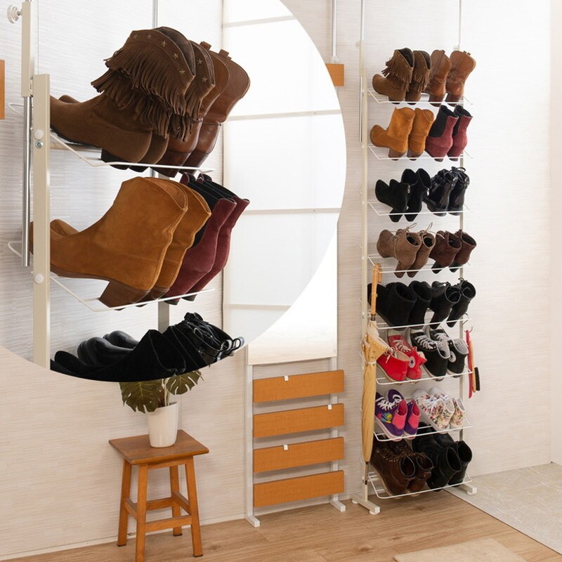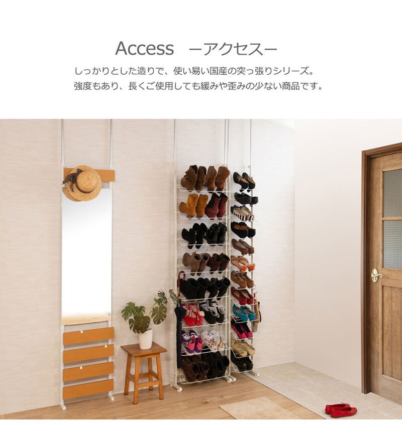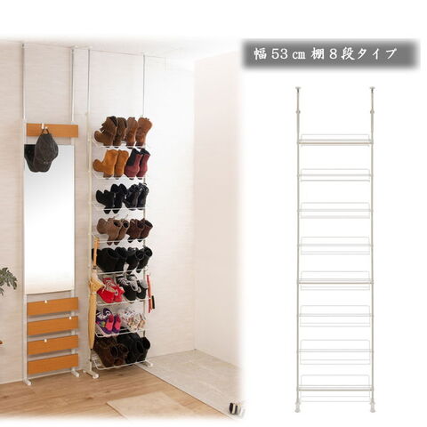 日本製 完成品 突っ張り つっぱり 壁面 薄型 シューズラック 靴入れ ハイカットブーツ専用 ブーツ 幅53cm ホワイト 白【送料無料】