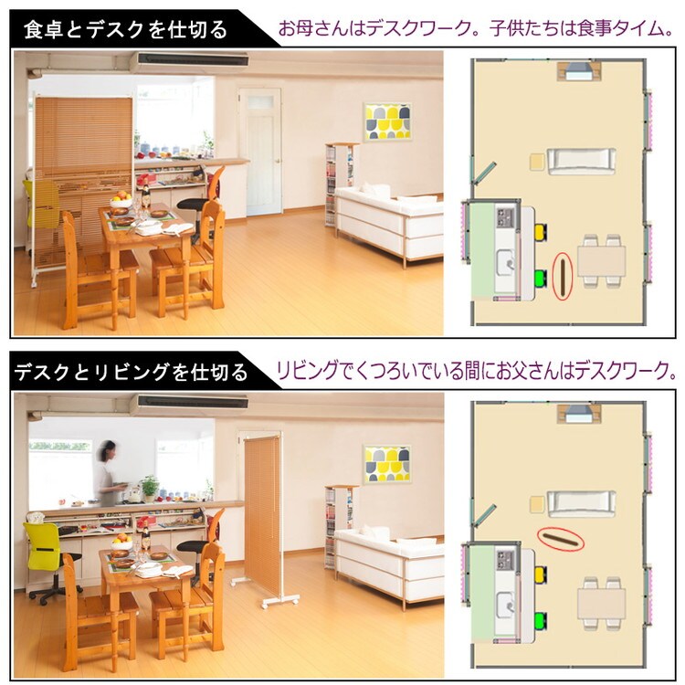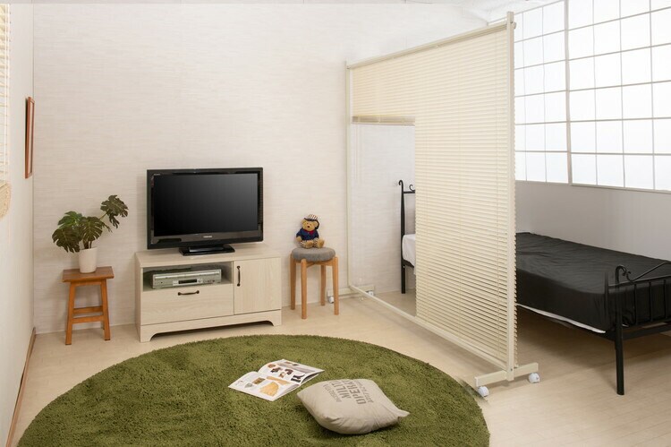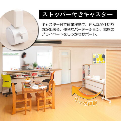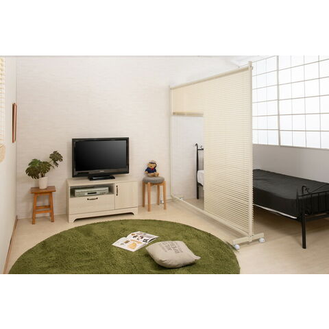 キャスター付きでお部屋を簡単に間仕切れる、おしゃれなブラインドが新登場!清潔感解放感のあるホワイト色、どのテイストの雰囲気にもしっくりくるナチュラル色とモダンでインテリアに映えるブラウン色はキャスターが付いて移動が楽々!