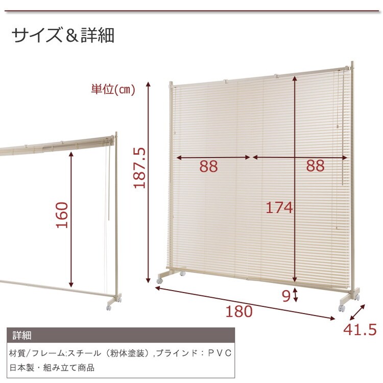ブラインド パーテーション 幅180 キャスター付き ホワイト 間仕切り おしゃれ 調光 オフィス 事務所【送料無料】