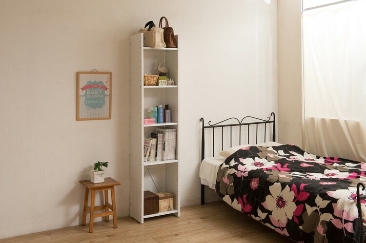 幅40、60、80で部屋に合わせて棚連結したり自在に収納カスタマイズが可能。棚板はスチール製で頑丈で斜め棚にしてマガジンディスプレイとしても。