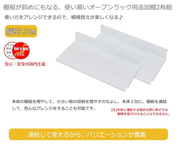 日本製 棚板2枚組 オープンラック 可変自在棚 幅55.5cm 国産 シンプル 収納 収納ラック【送料無料】