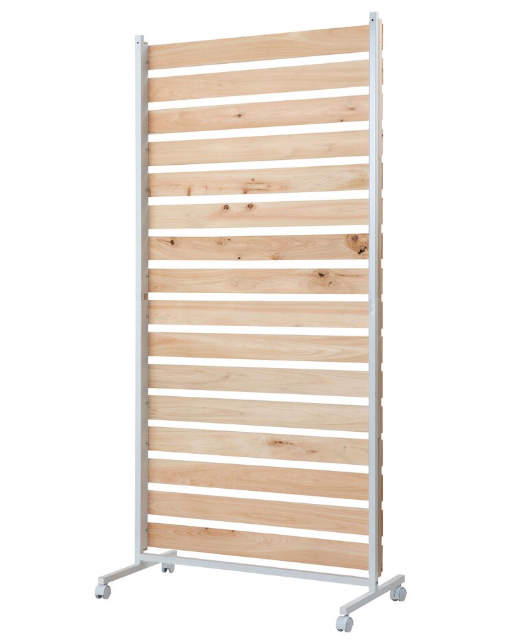 間仕切りパーテーションに、仕切るだけでなく、飾る・掛けるをプラスし、ヒノキを贅沢に使用した癒しのキャスター付き間仕切りパーテーションが新登場!