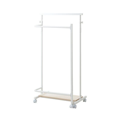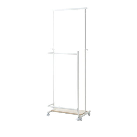 IKOU キャスター付き衣桁 高さ伸縮 回転式ハンガー ホワイトナチュラル 桐棚 ハンガーラック 衣桁 着物 ホワイト スリム コートハンガー 省スペース 和 洋室 寝室 玄関 子供 洋服 リビング キャスター【送料無料】