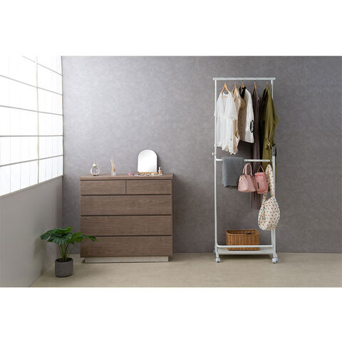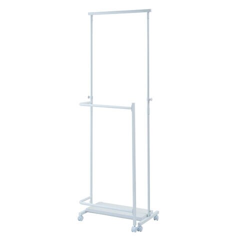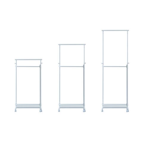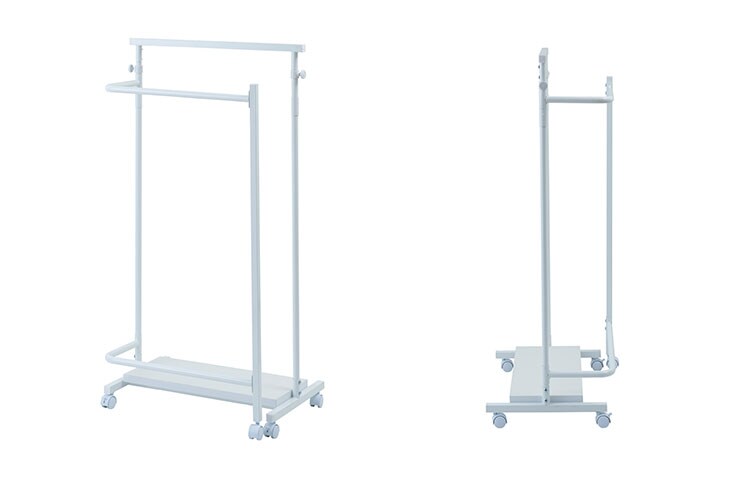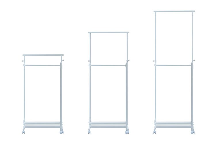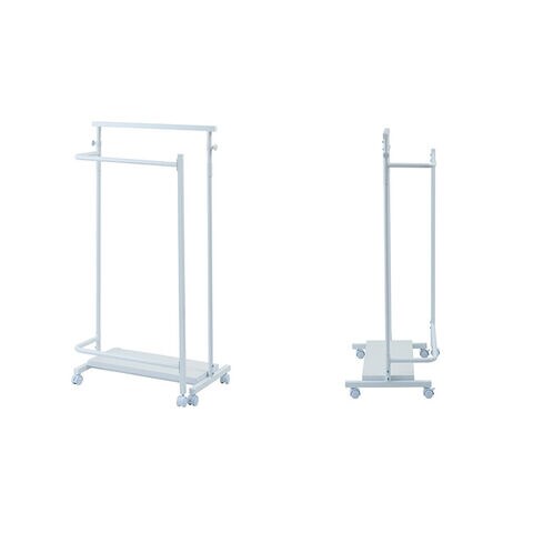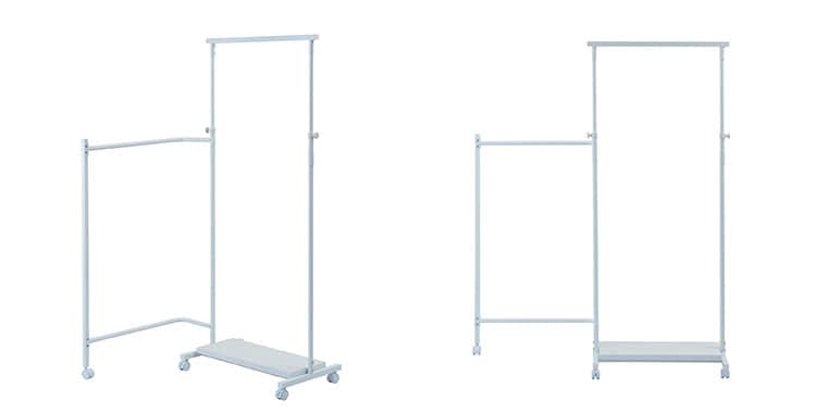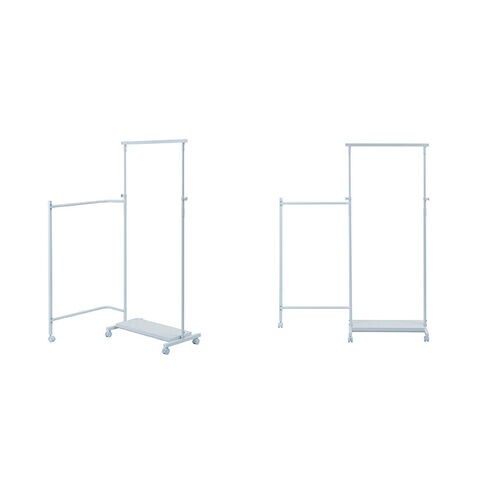 ■商品について/お洒落なキャスター付きのハンガーラックとして【TBAR】が新登場!!カラーは2色から選べます。洋室でも合う、シンプルで明るいホワイトカラー、深みのある重厚な印象のブラックカラーは高さ調整自在の多機能型ハンガーラック。ホワイトの棚板とホワイトのフレームで明るい色系の洋服などが映えます。ブラックフレームにヴィンテージ風棚板タイプはブルージーンズなどデニムなど好相性。また高さ調節が可能なので、丈の長いワンピーズやオーバーオールなど上着が引きづることなく掛けることができ、子供から大人へ成長過程に合わせて使用も楽しめます。キャスター付きで移動が簡単です。使う時にサッと出して広げる。閉じて隙間にサッと直す。使いやすくて大変便利な衣桁です。