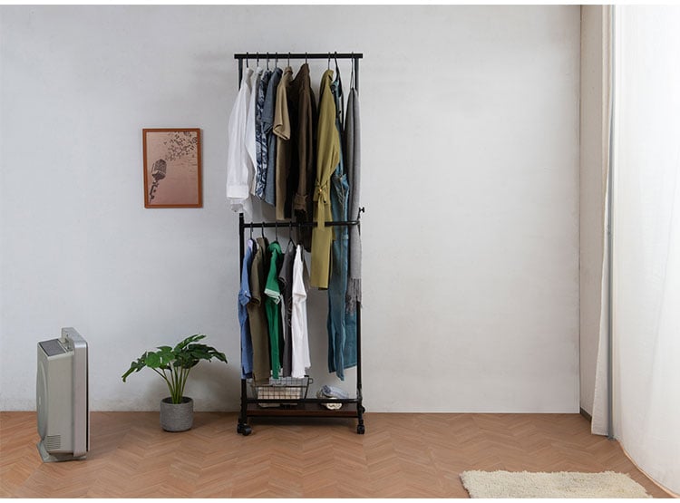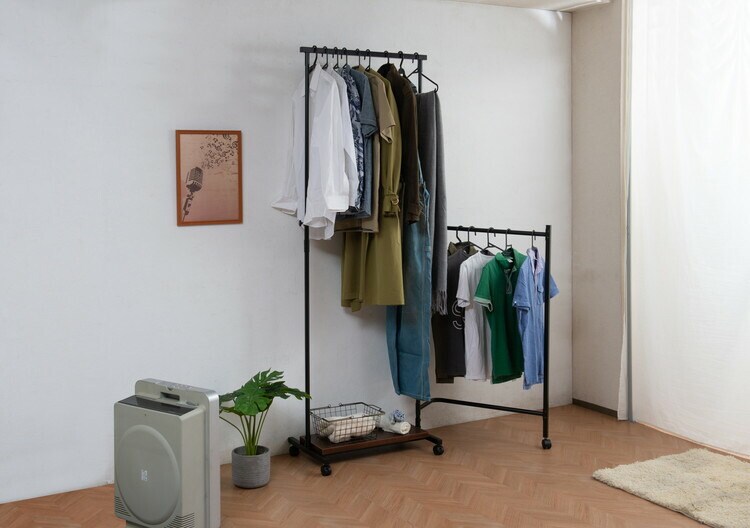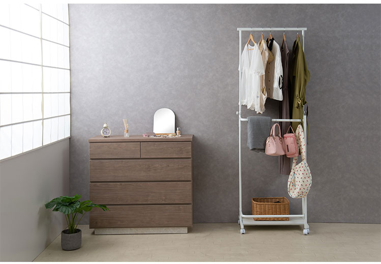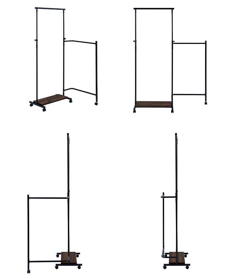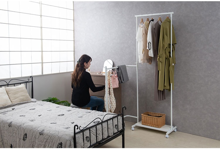 ■商品について/お洒落なキャスター付きのハンガーラックとして【TBAR】が新登場!!カラーは2色から選べます。洋室でも合う、シンプルで明るいホワイトカラー、深みのある重厚な印象のブラックカラーは高さ調整自在の多機能型ハンガーラック。ホワイトの棚板とホワイトのフレームで明るい色系の洋服などが映えます。ブラックフレームにヴィンテージ風棚板タイプはブルージーンズなどデニムなど好相性。また高さ調節が可能なので、丈の長いワンピーズやオーバーオールなど上着が引きづることなく掛けることができ、子供から大人へ成長過程に合わせて使用も楽しめます。キャスター付きで移動が簡単です。使う時にサッと出して広げる。閉じて隙間にサッと直す。使いやすくて大変便利な衣桁です。