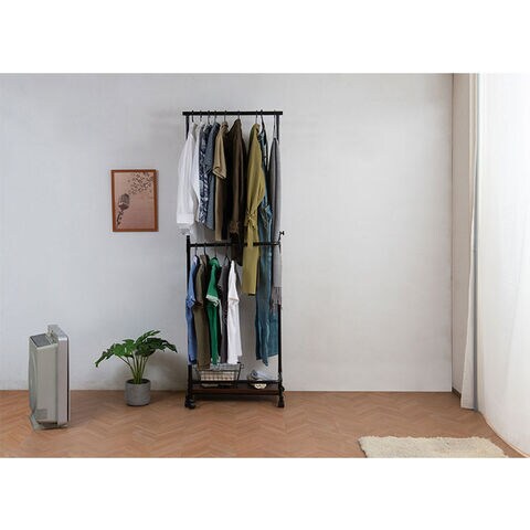 TBAR 高さ自在回転式ハンガー多機能なキャスター付きハンガーラック ブラックブラウン ハンガーラック ブラウン スリム コートハンガー 省スペース 寝室 玄関 子供 洋服 キャスター付き 棚付き【送料無料】