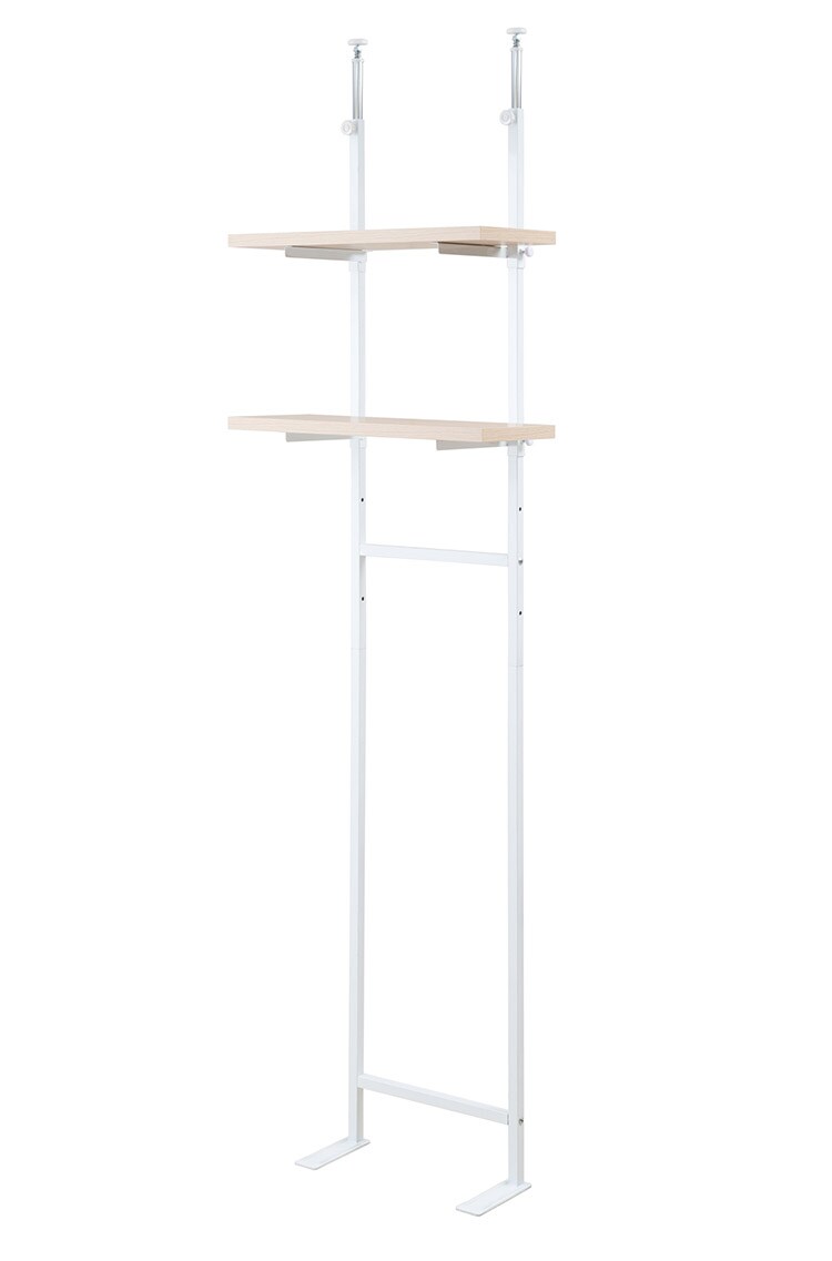 突っ張り壁面収納 無段階調整2枚棚オープンラック 幅59.5cm マリンナチュラル 壁面ラック 棚 つっぱり 薄型 収納 ディスプレイラック 店舗 新生活 カフェ サロン 一人暮らし diy 北欧【送料無料】