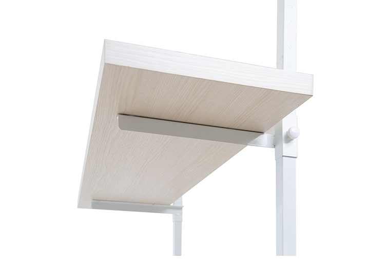 無段階に棚板の位置を調節できる突っ張りウォールシェルフ。棚板の位置を無段階に調節できるから自分の丁度いい高さにすることができます。