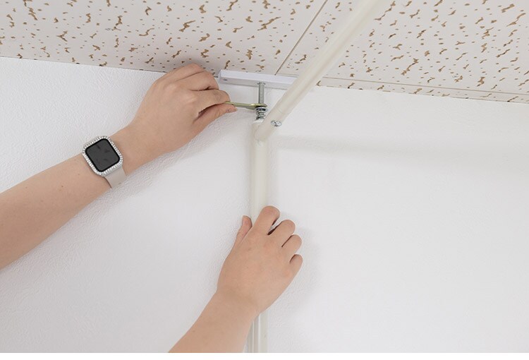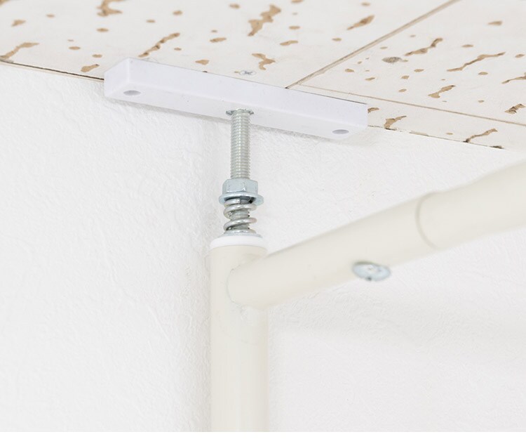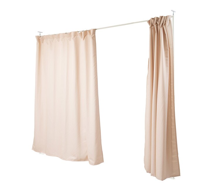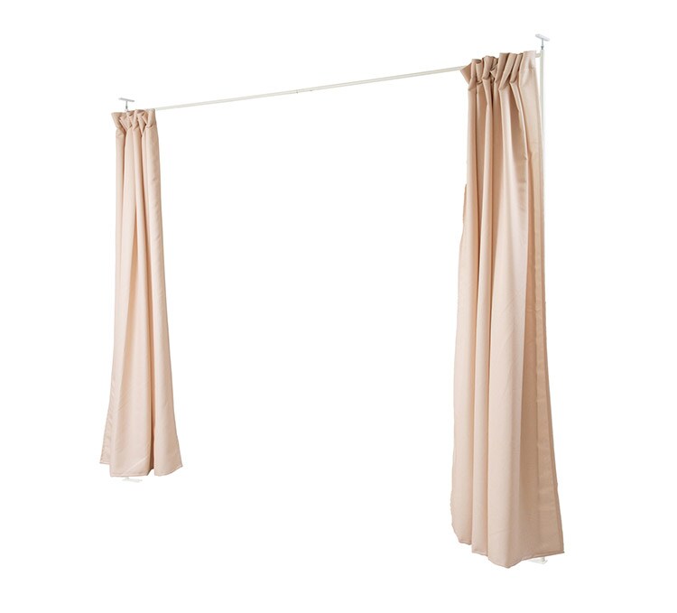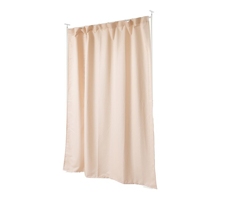 突っ張り式で簡易に間仕切れるカーテンタイプ。天井近くまで隠せるので完全個室感のある仕上がり。並べてクローゼット空間を造ったり、ブティックの試着室のような使い方もできます。カーテンは取り外し可能で手持ちのカーテンに付け替えも可能。邪魔にならない省スペース設計で使いまわしも簡単。