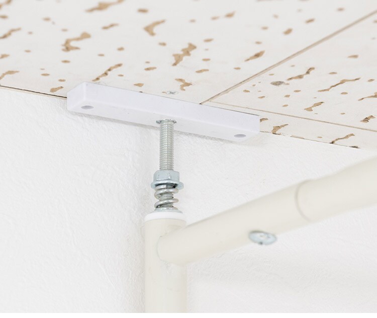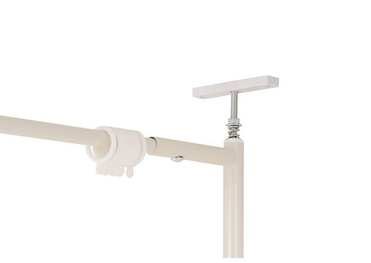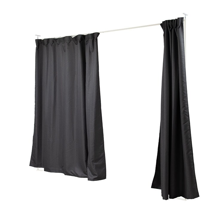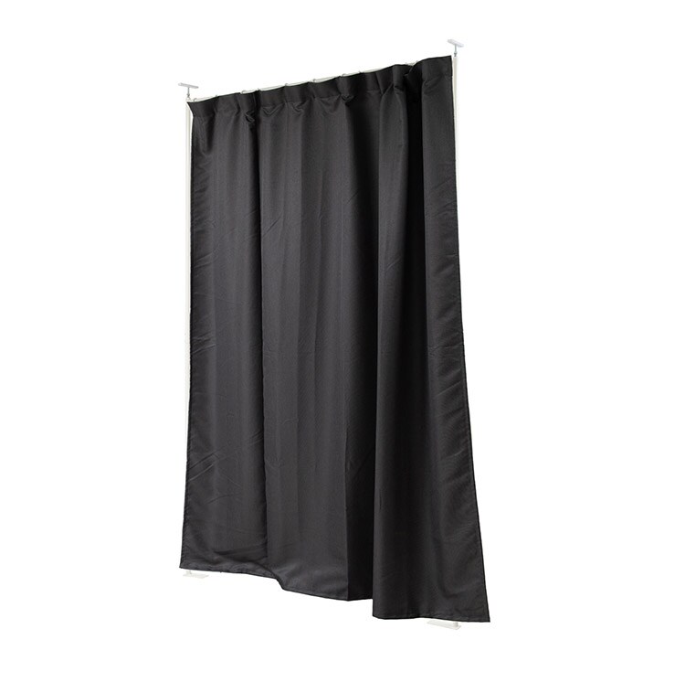 突っ張り式で簡易に間仕切れるカーテンタイプ。天井近くまで隠せるので完全個室感のある仕上がり。並べてクローゼット空間を造ったり、ブティックの試着室のような使い方もできます。カーテンは取り外し可能で手持ちのカーテンに付け替えも可能。邪魔にならない省スペース設計で使いまわしも簡単。