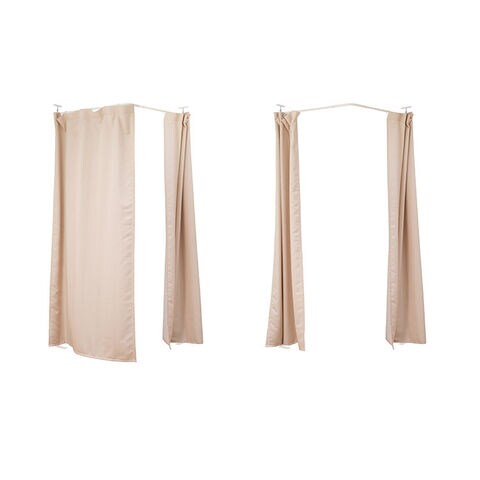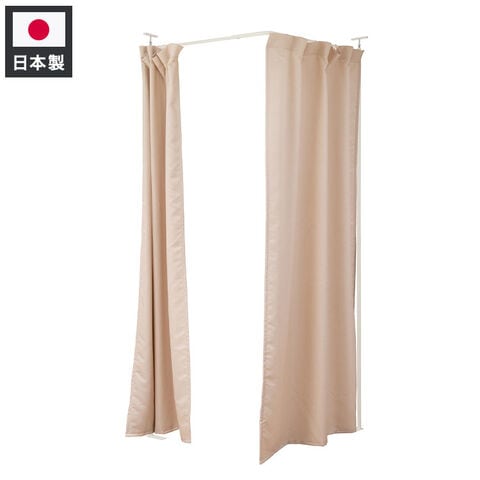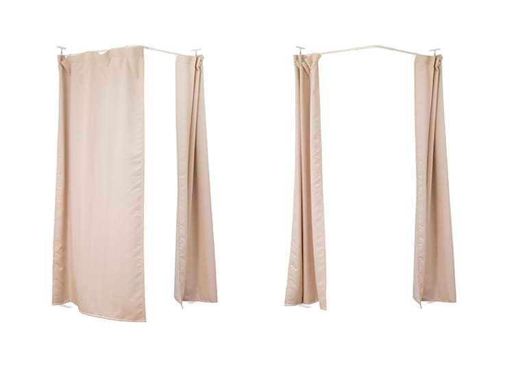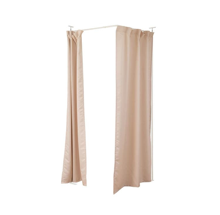 突っ張り式で簡易に間仕切れるカーテンタイプ。天井近くまで隠せるので完全個室感のある仕上がり。並べてクローゼット空間を造ったり、ブティックの試着室のような使い方もできます。カーテンは取り外し可能で手持ちのカーテンに付け替えも可能。邪魔にならない省スペース設計で使いまわしも簡単。