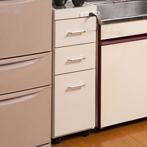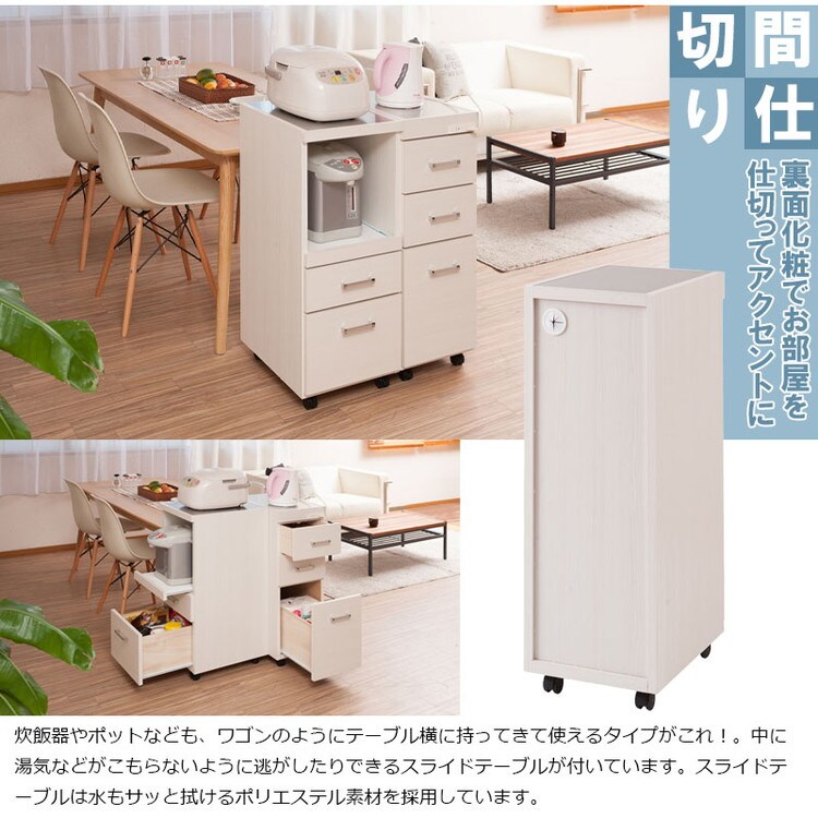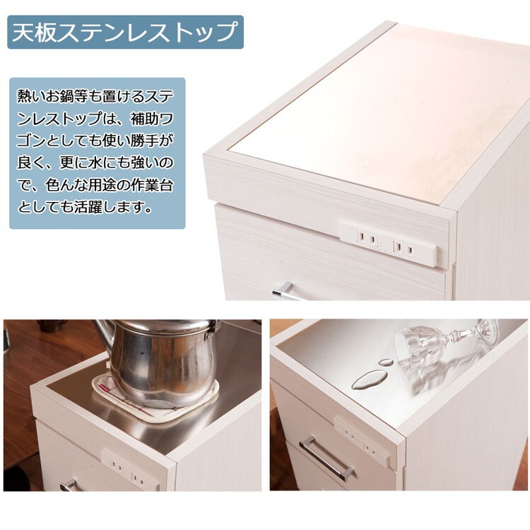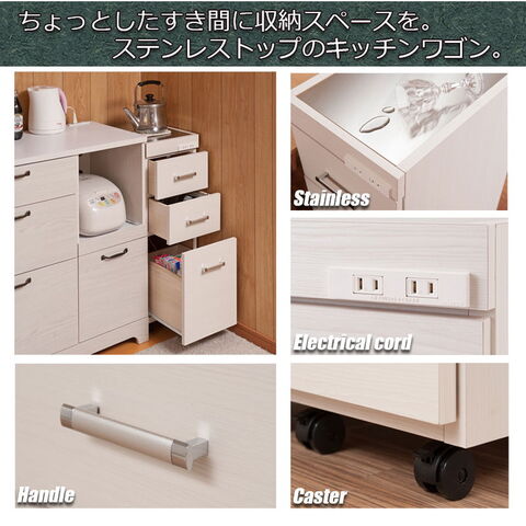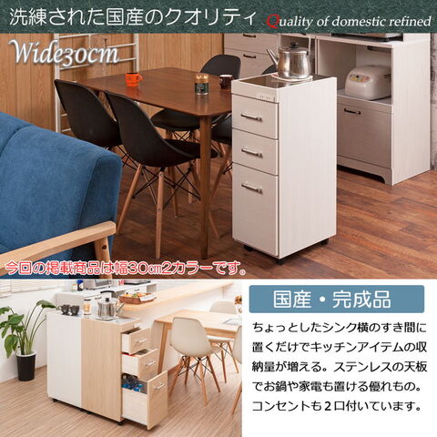 Sinker キッチンワゴン 幅30 ホワイト 木目 ステンレス キッチン 収納 スリム すきま収納 隙間収納 キッチンカウンター サイドワゴン キャスター付き コンセント 調理台 作業台 ストッカー【送料無料】