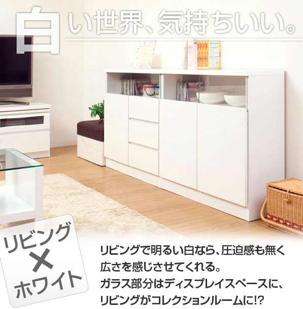 日本製 完成品 大川家具 リビング キャビネット 幅80 ホワイト 白 引き出し おしゃれ 食器棚 カウンター 本棚 ブックラック 収納 国産【送料無料】