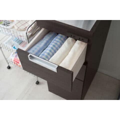 | 本体:(約)幅20.5×奥行44×高さ85(キャスター含む)cm 引出し内寸:(約)幅(浅)13(深)11×奥行33×深さ(浅)13(深)23/有効34cm |
