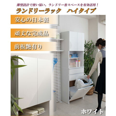 ランドリーラック バスケット付きランドリー ハイタイプ ホワイト ラック 収納【送料無料】