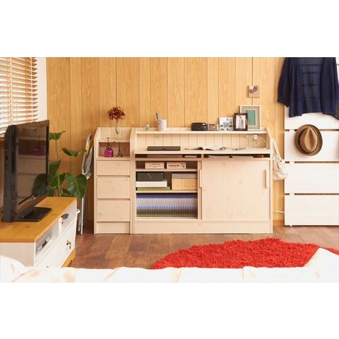 日本製 完成品 カウンター下 デスク 天然木 おしゃれ 幅118.5 118.5幅 引き戸 チェスト付き 棚付き 作業机 テレワーク 在宅勤務 北欧【送料無料】