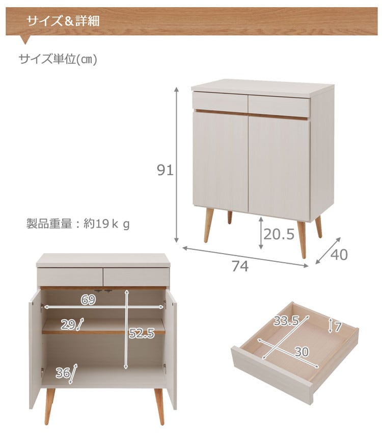 本体:(約)幅74×奥行40×高さ91(脚部20.5含む)cm