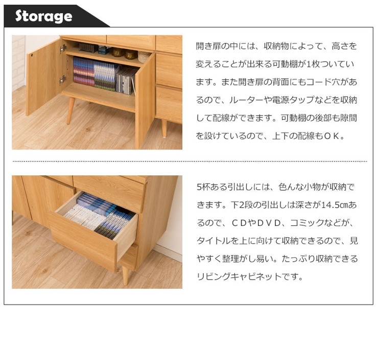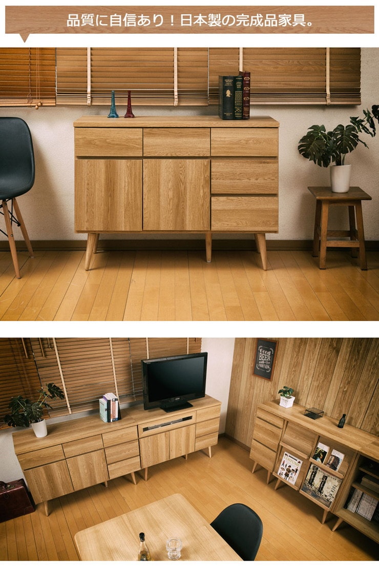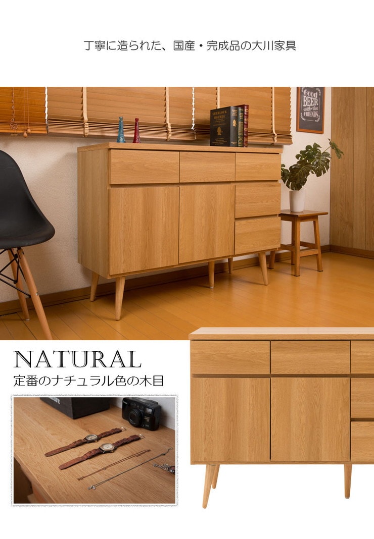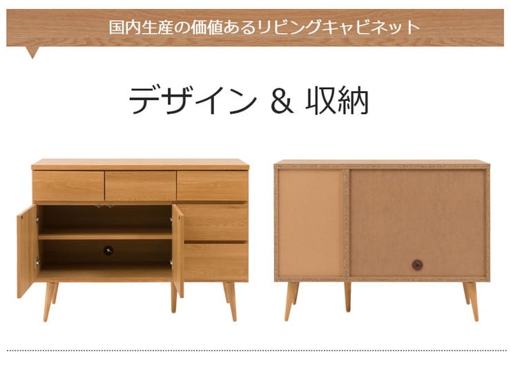 日本製 脚付きリビングキャビネット ナチュラル 天然木脚 完成品 タンス 収納 収納家具 国産収納家具 木製 棚 おしゃれ【送料無料】