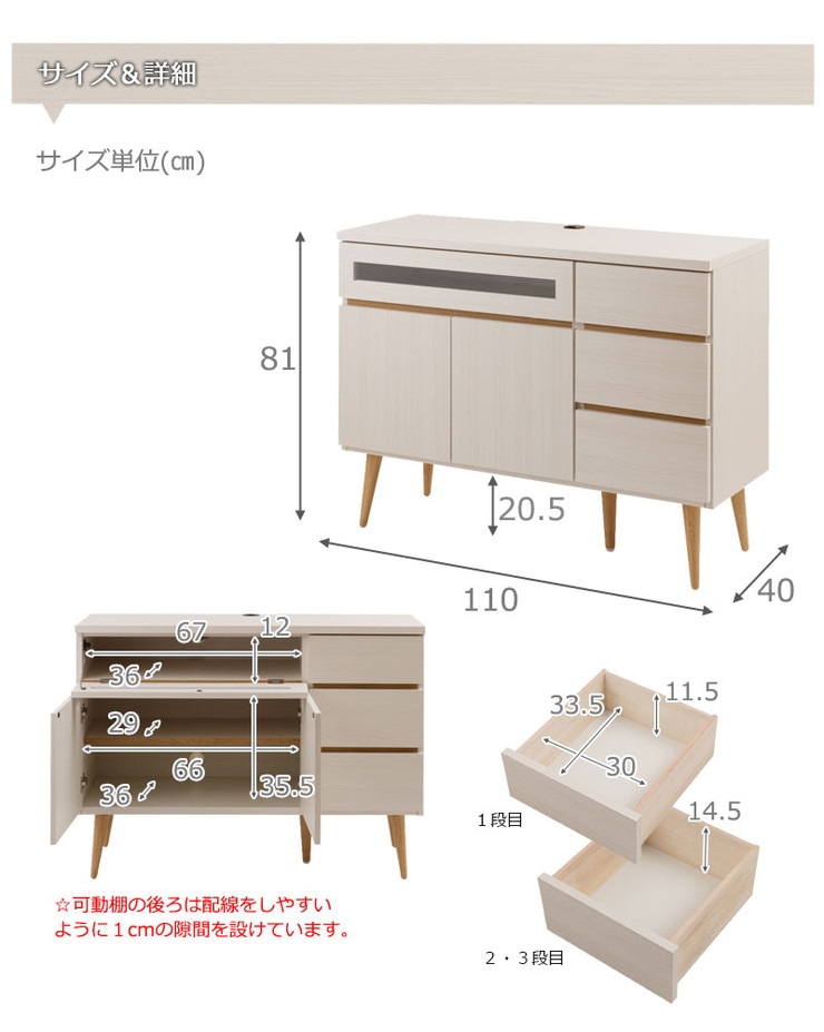 ■商品の仕様/本体:(約)幅110×奥行40×高さ81(脚20.5含む)cm