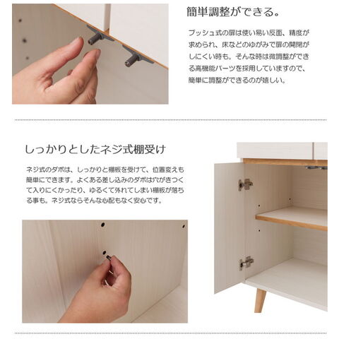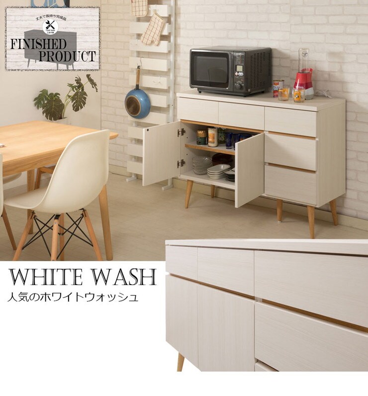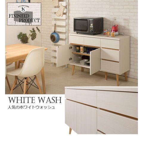 日本製 キッチンカウンター 幅110cm ホワイトウォッシュ 収納型タイプ 完成品 組み立て不要 レンジ台 レンジラック 食器棚【送料無料】
