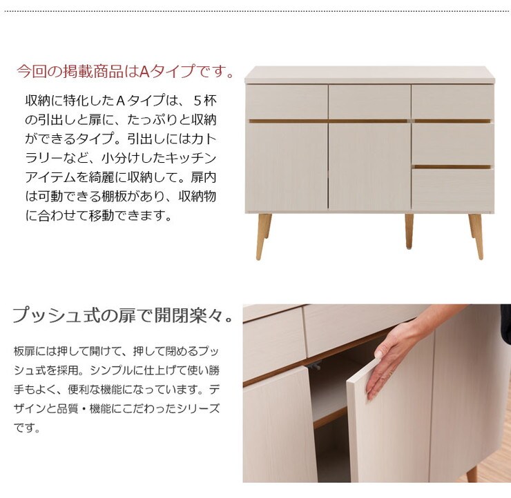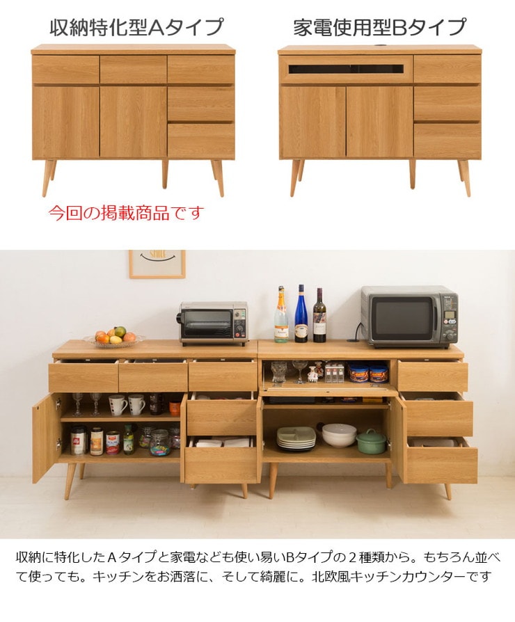 レンジ台として、またストッカーとして多彩に機能性を発揮するカウンターシリーズ。