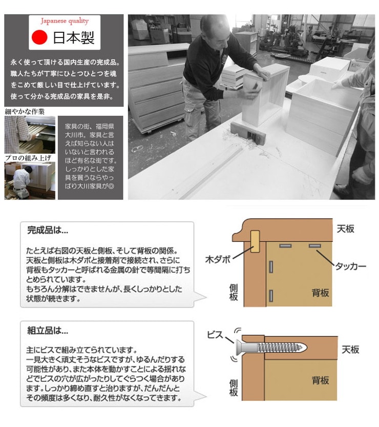 ■商品の仕様/前・天板:強化プリント紙化粧繊維板