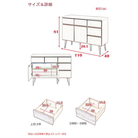 ■商品サイズ/本体:(約)幅110×奥行40×高さ81(脚20.5含む)cm
