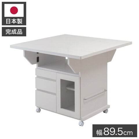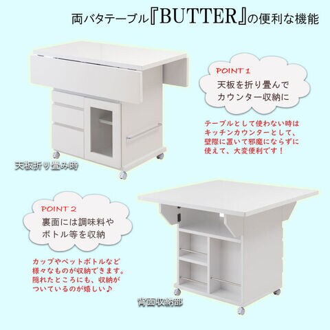 日本製 完成品 大川家具 Butter 幅89.5 高さ70 テーブル バタフライカウンター ホワイト キッチン収納 おしゃれ 白 リビング キャスター付き バタフライワゴン 国産【送料無料】