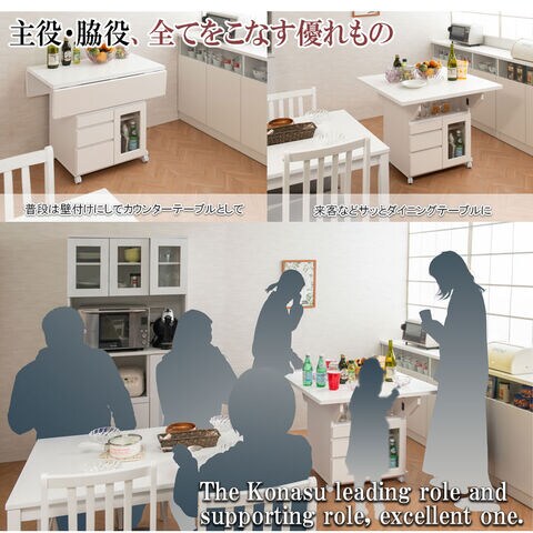 キッチンカウンターとしても壁際に置いて邪魔にならず大変便利です。